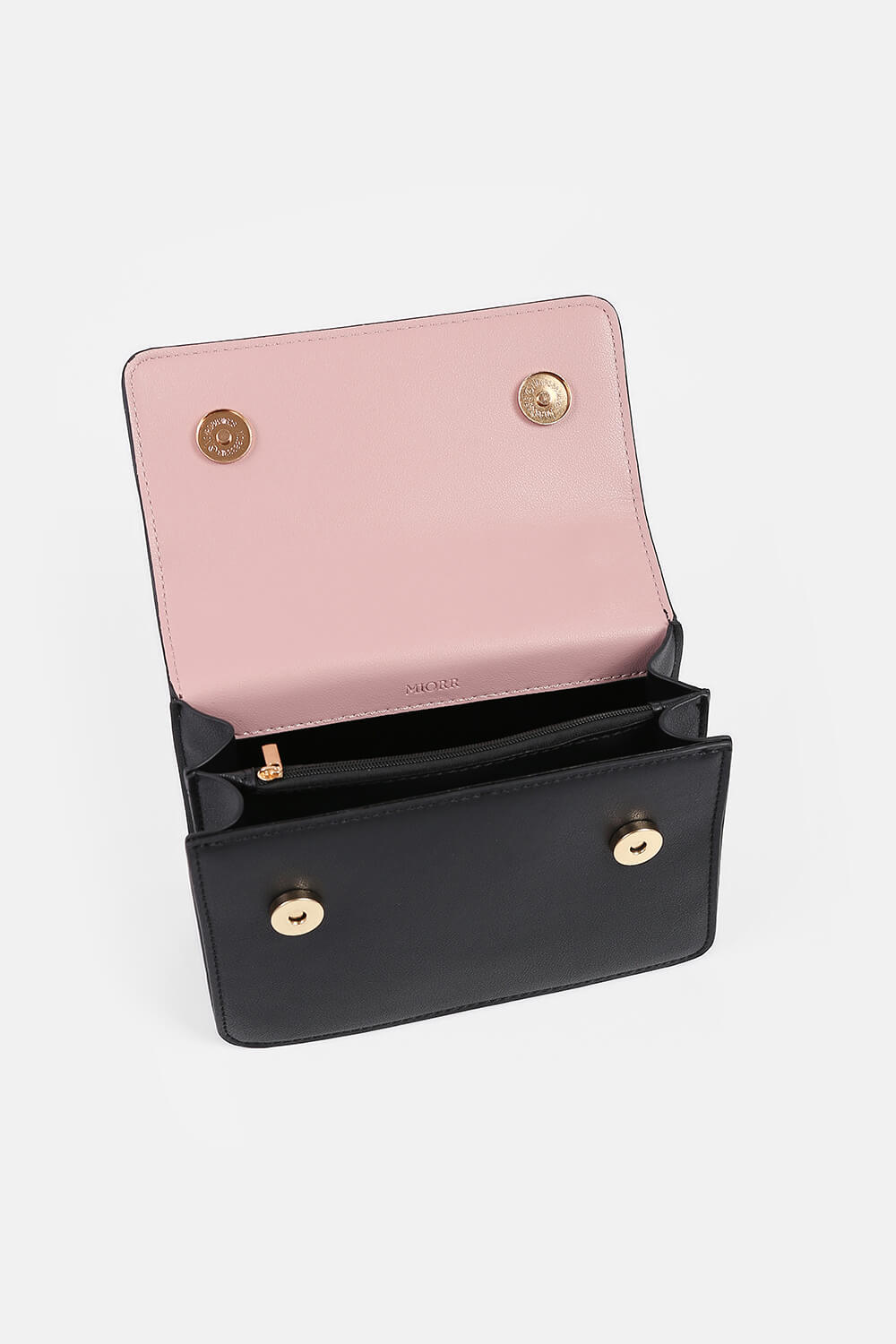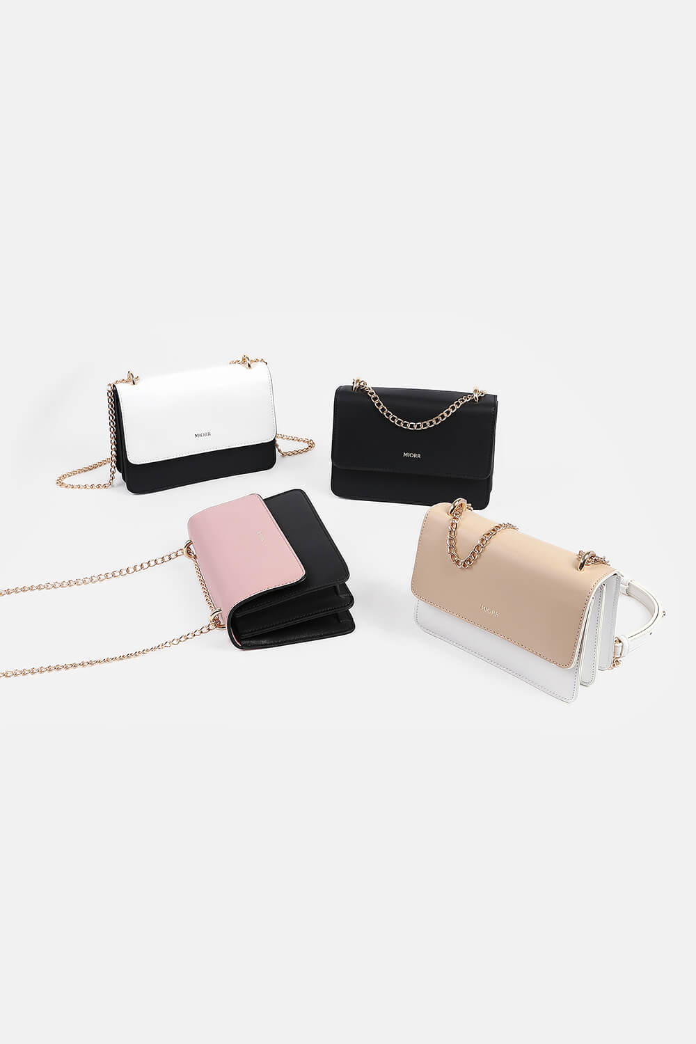 Thiết kế nắp gập phối hai màu sắc trẻ trung, hiện đại. kích thước nhỏ nhắn cùng dây đeo dài vừa vặn. Hãy thử kết hợp chiếc túi này với áo crop top, quần đáy chuông bằng vải sa tanh và giày mules dệt để có vẻ ngoài năng động vào buổi sáng cuối tuần.