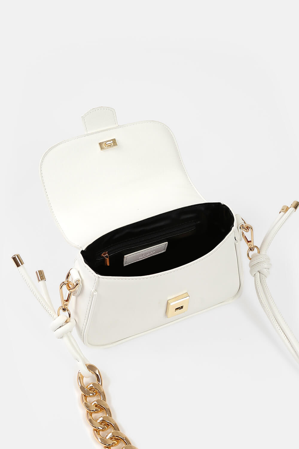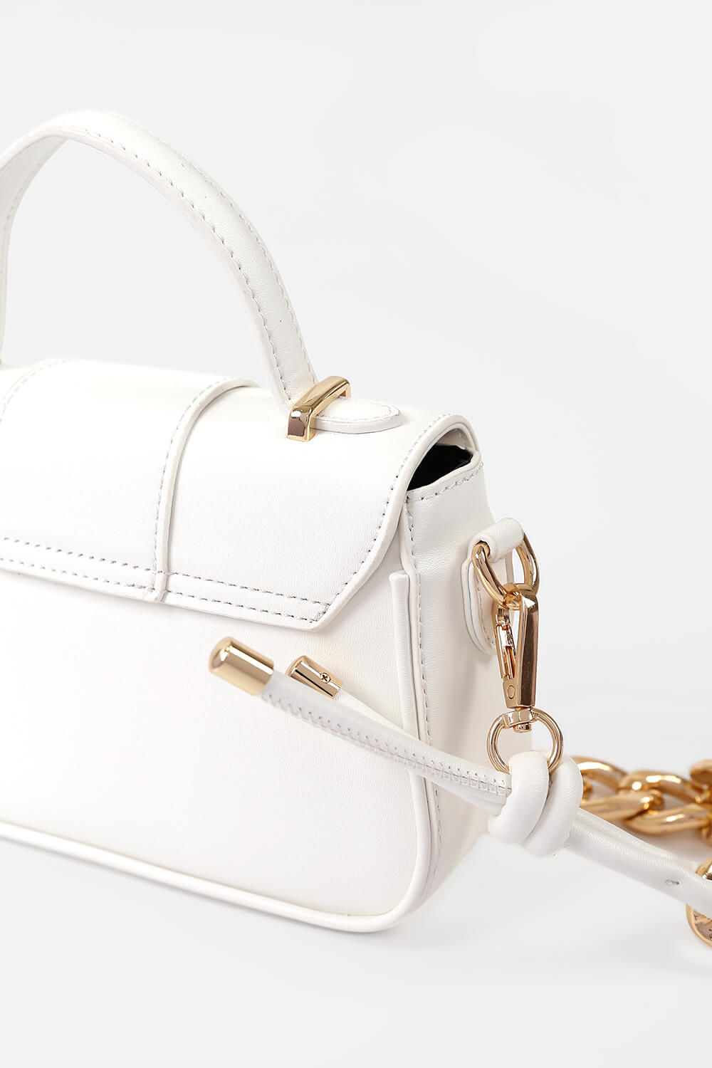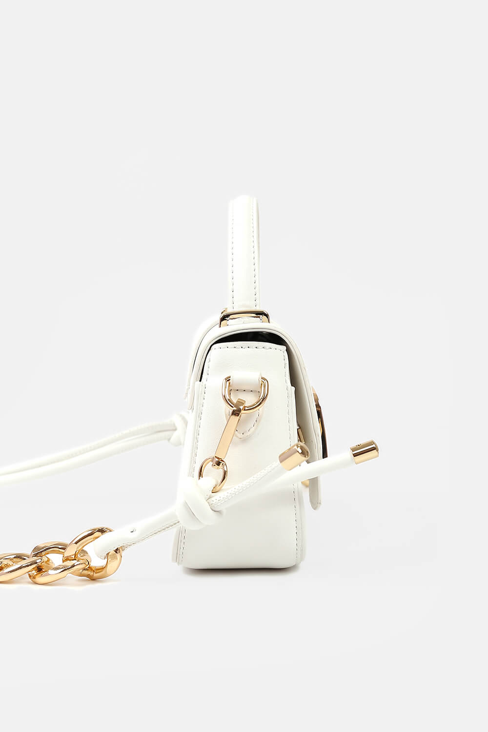 Ánh nhìn tập trung đầu tiên vào dây đeo chéo bằng da phối xích bản lớn ấn tượng và kích thước nhỏ gọn, dễ thương.