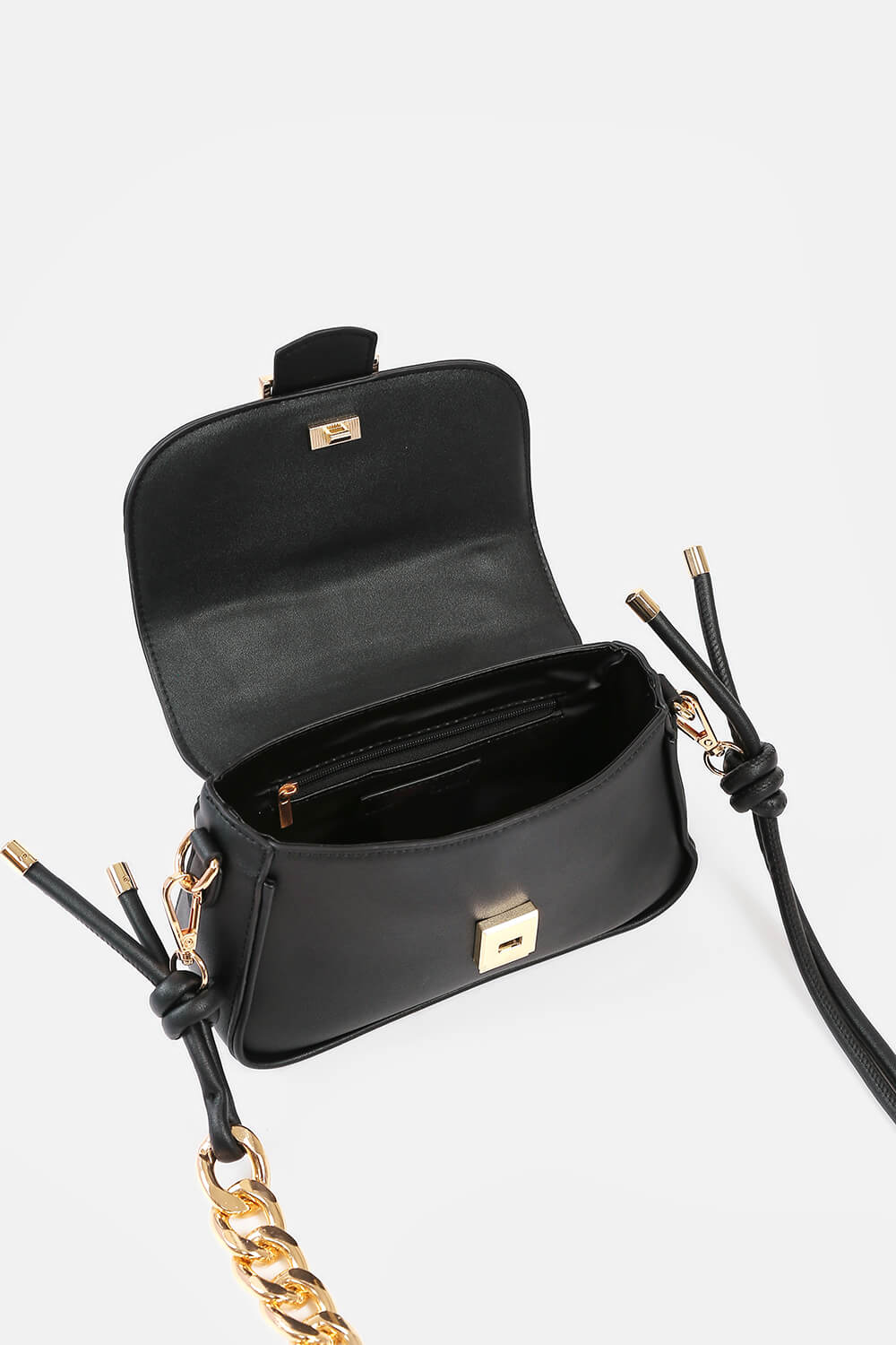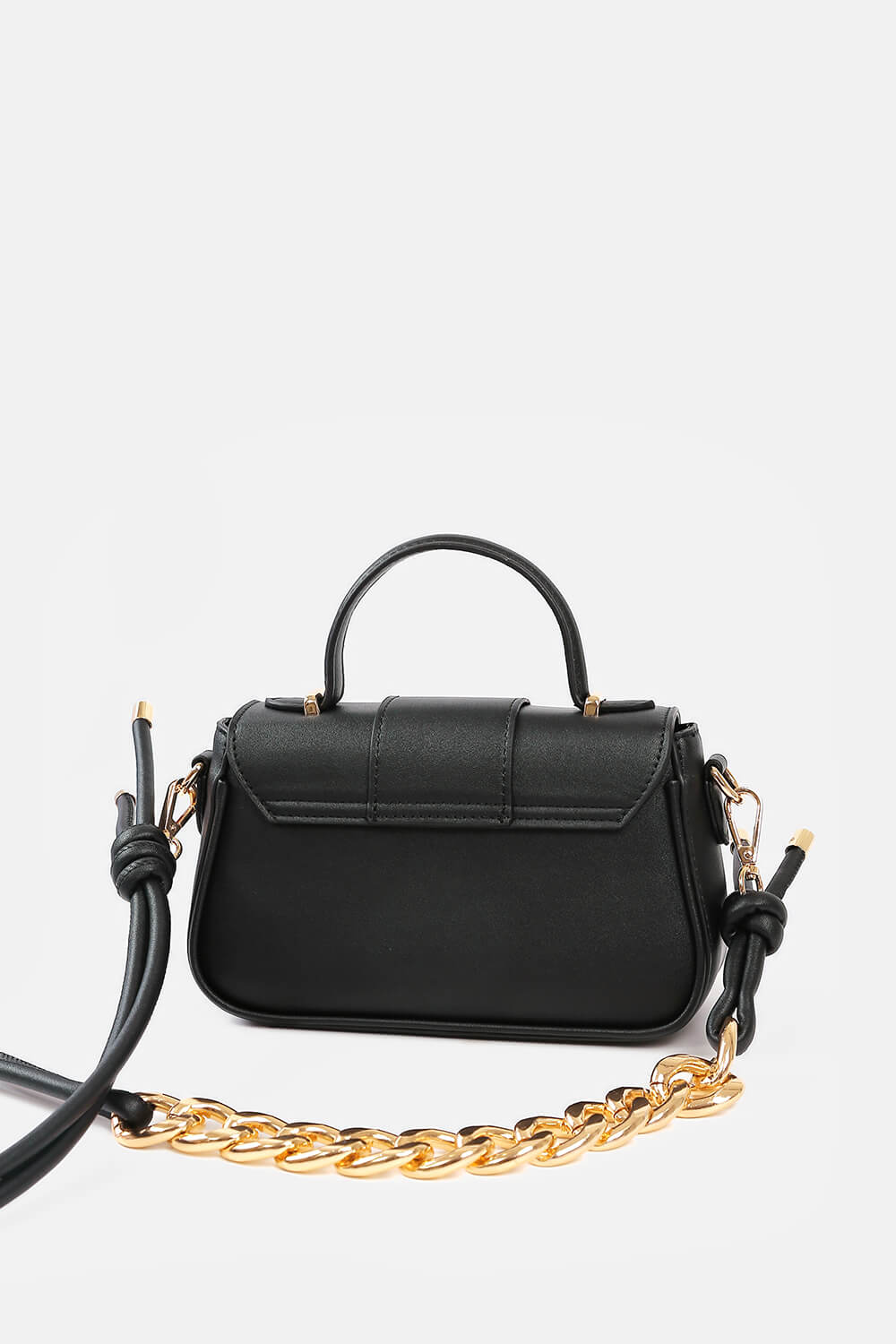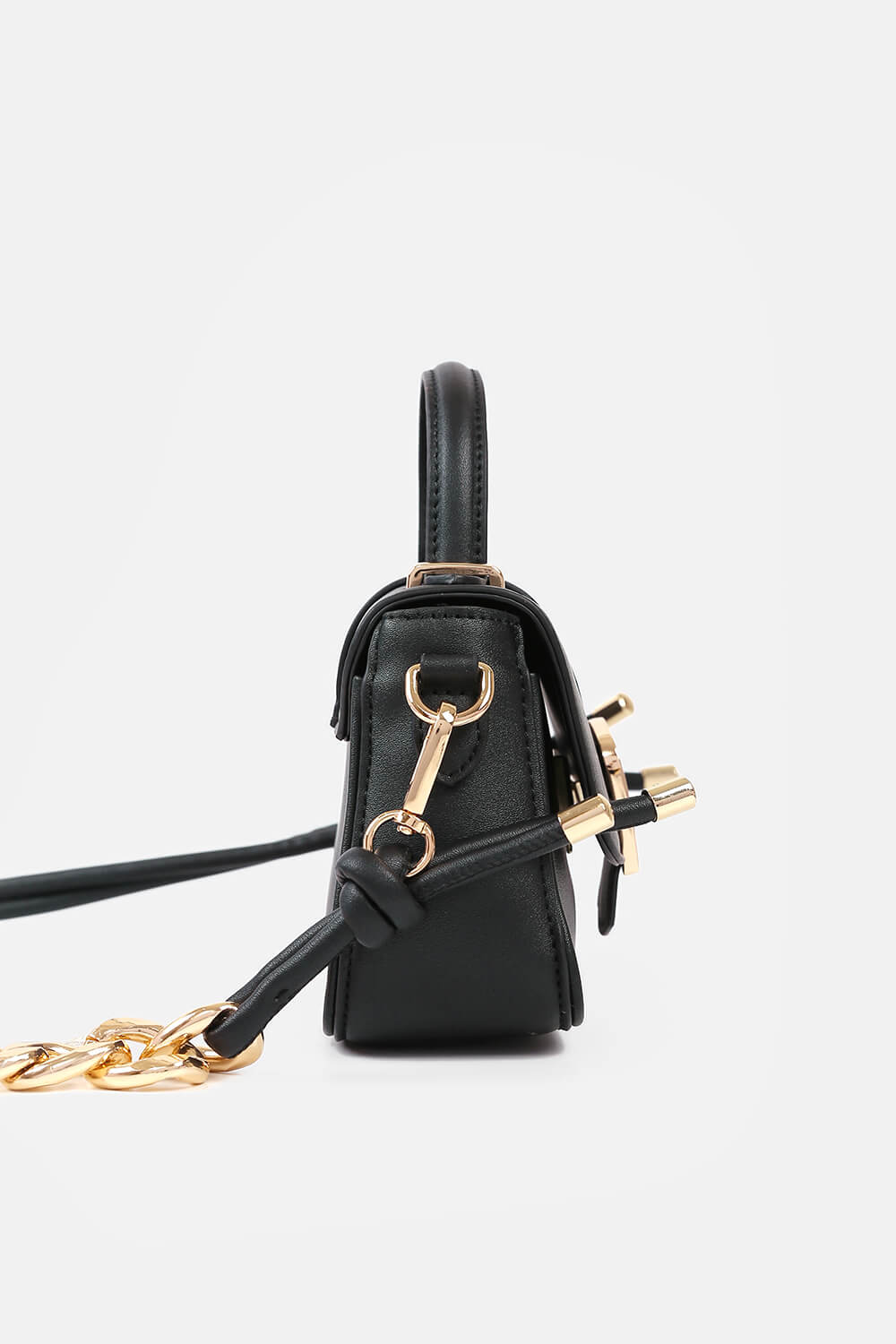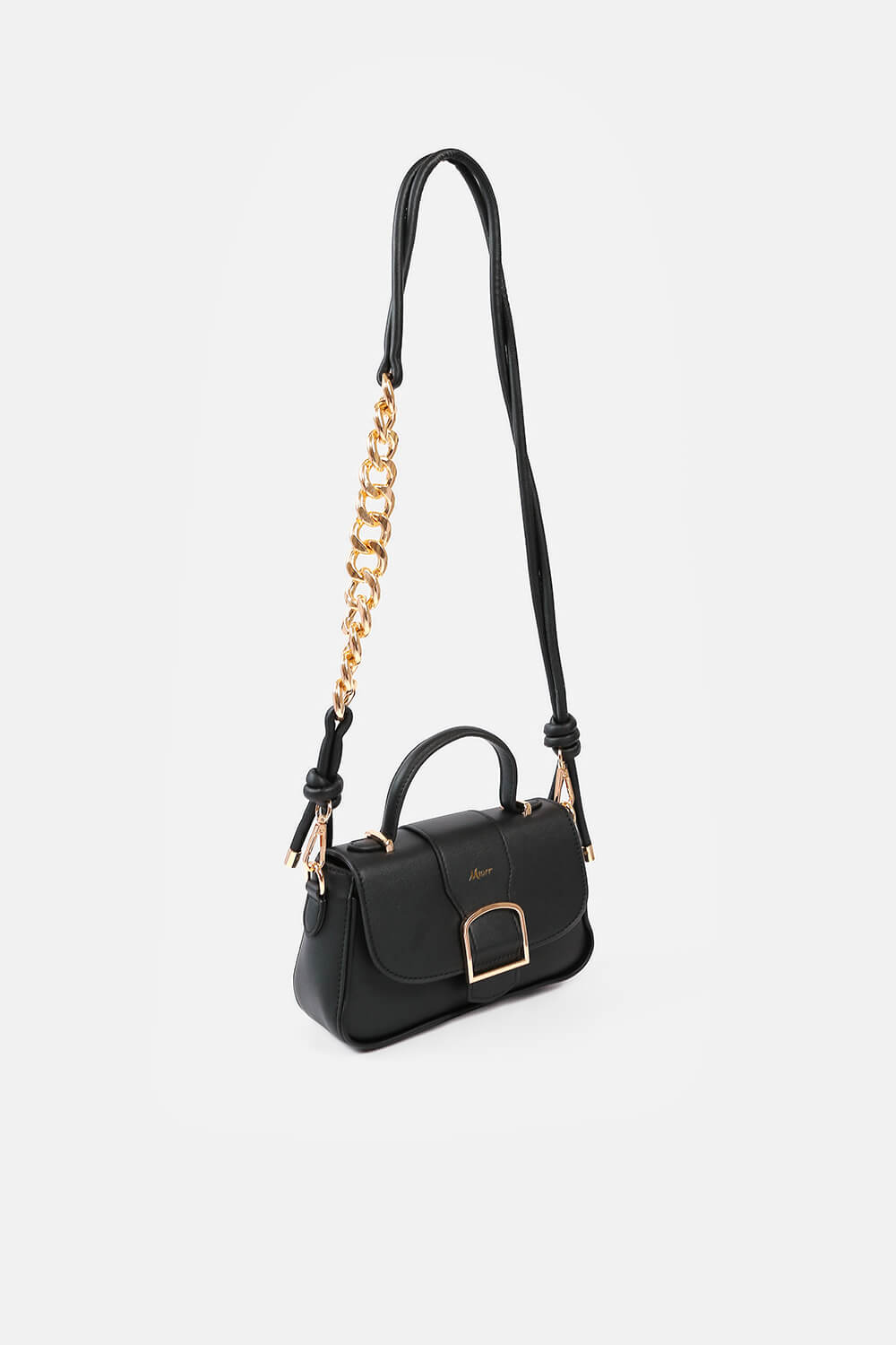 Ánh nhìn tập trung đầu tiên vào dây đeo chéo bằng da phối xích bản lớn ấn tượng và kích thước nhỏ gọn, dễ thương.