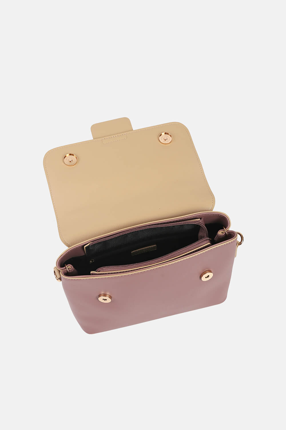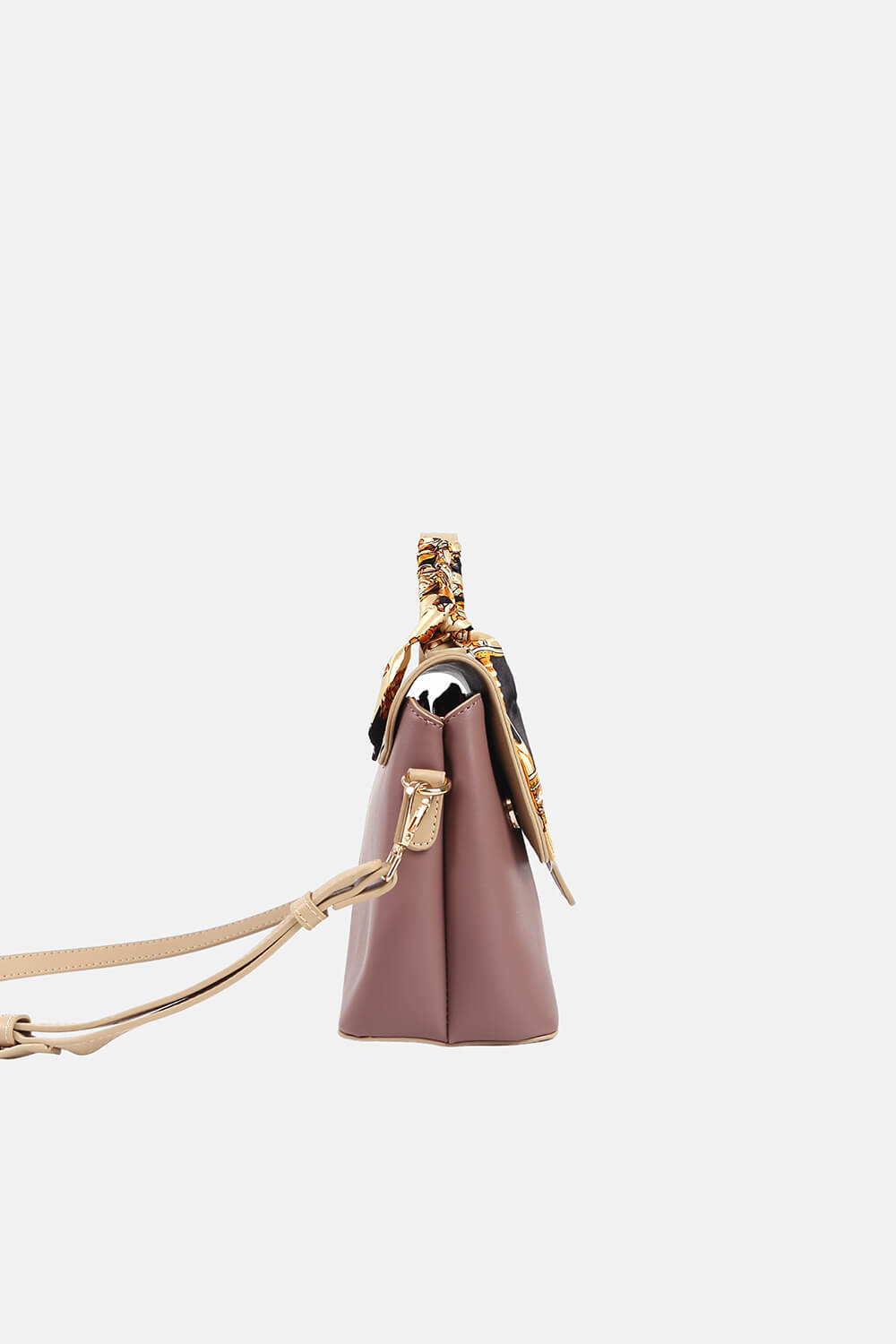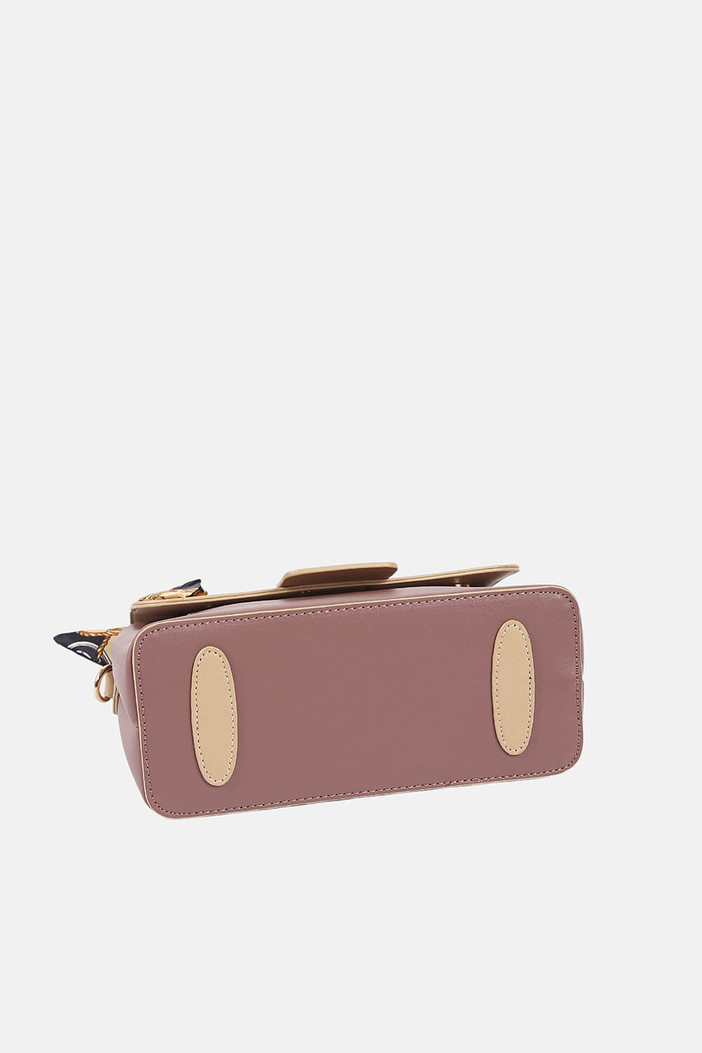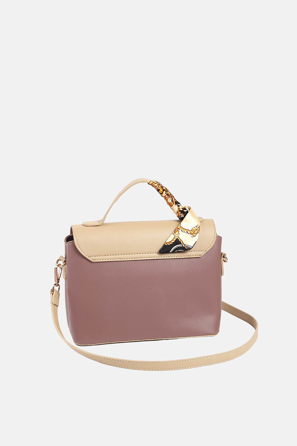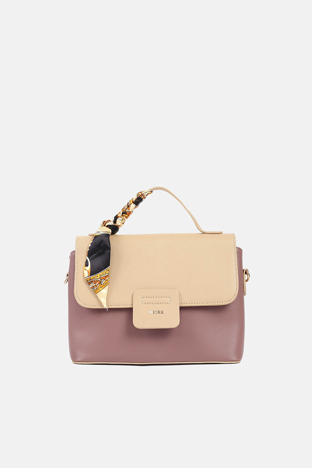 Kết nối từ hai mảng sắc màu khác nhau tạo ra sự hài hòa hợp lí, bổ sung khăn quấn túi cách điệu đổi mới diện mạo thường thấy. Chiếc túi xách này phù hợp với các cô nàng yêu thích phong cách thanh lịch, nữ tính. Phom túi mềm mại cùng khóa nam châm từ tính chắc chắn giữ an toàn cho đồ đạc bên trong.