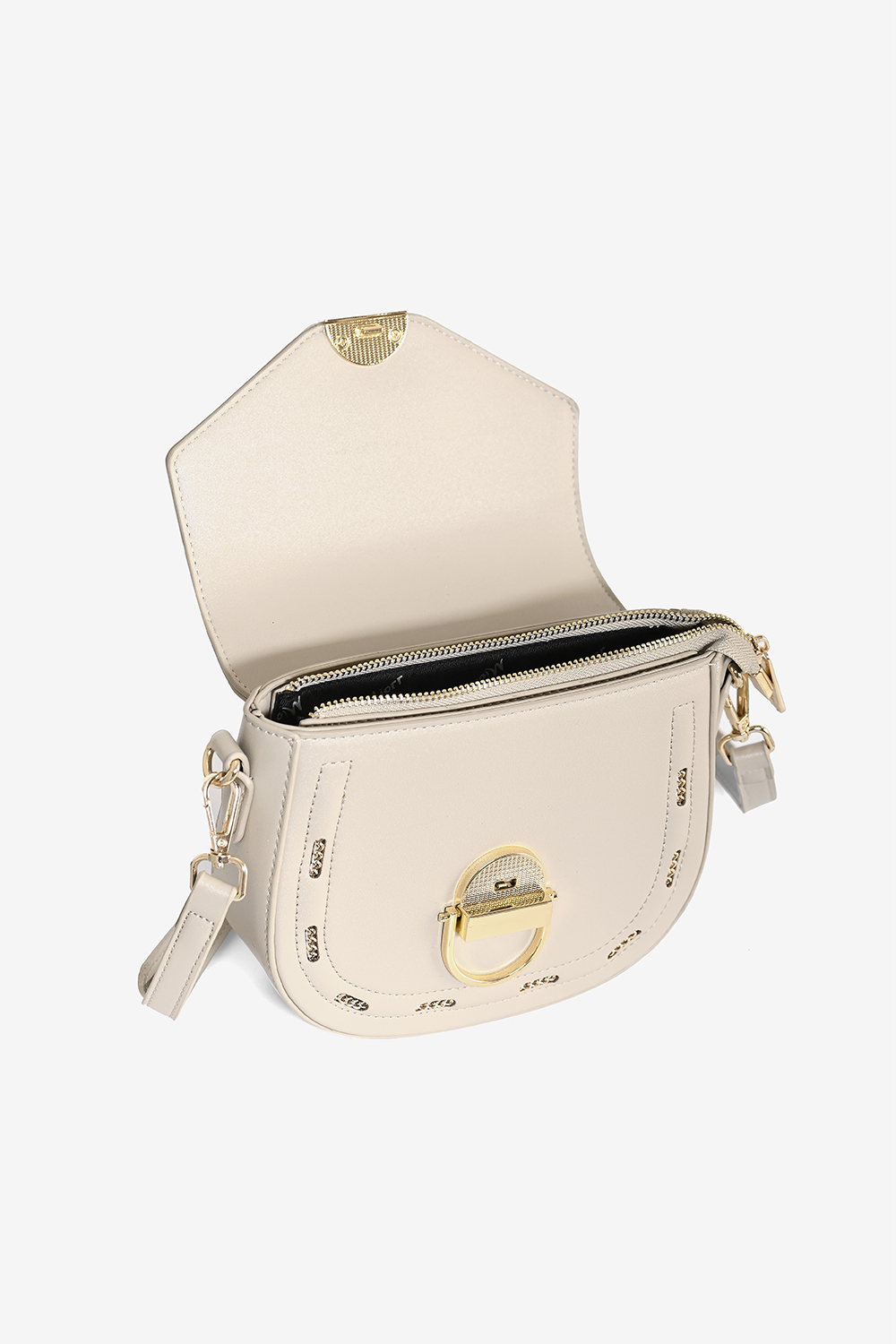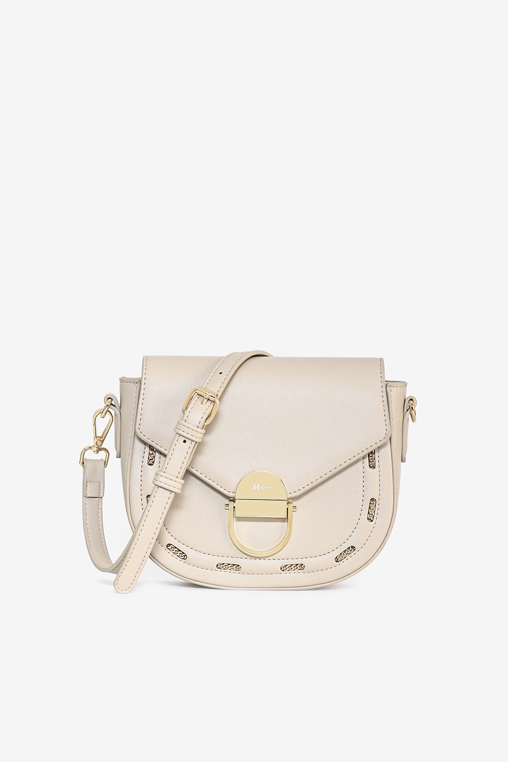 Chiếc túi đeo chéo cỡ nhỏ này có kiểu dáng đáy cong cổ điển với chi tiết khóa hợp kim vàng sang trọng sẽ tạo thêm điểm nhấn quyến rũ cho tất cả các bộ trang phục của bạn. Vẻ đẹp trang nhã này có thể được mang theo hai cách: đeo ngang người hoặc đeo chéo qua vai bằng dây đeo ngắn. Kết hợp nó với một chiếc áo sơmi xếp nếp, quần jean denim và giày lười để có một cái nhìn giản dị và mát mẻ.