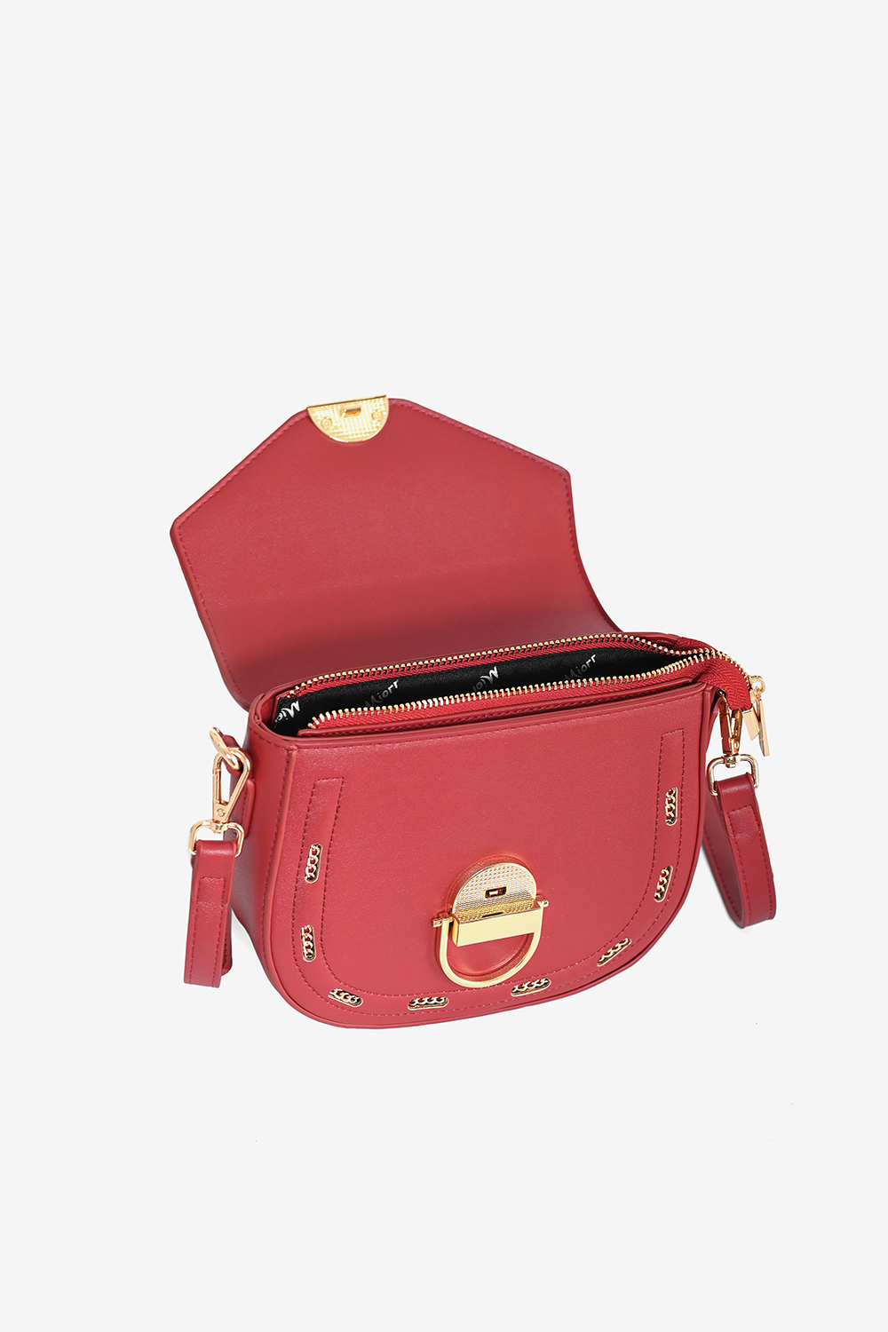 Chiếc túi đeo chéo cỡ nhỏ này có kiểu dáng đáy cong cổ điển với chi tiết khóa hợp kim vàng sang trọng sẽ tạo thêm điểm nhấn quyến rũ cho tất cả các bộ trang phục của bạn. Vẻ đẹp trang nhã này có thể được mang theo hai cách: đeo ngang người hoặc đeo chéo qua vai bằng dây đeo ngắn. Kết hợp nó với một chiếc áo sơmi xếp nếp, quần jean denim và giày lười để có một cái nhìn giản dị và mát mẻ.