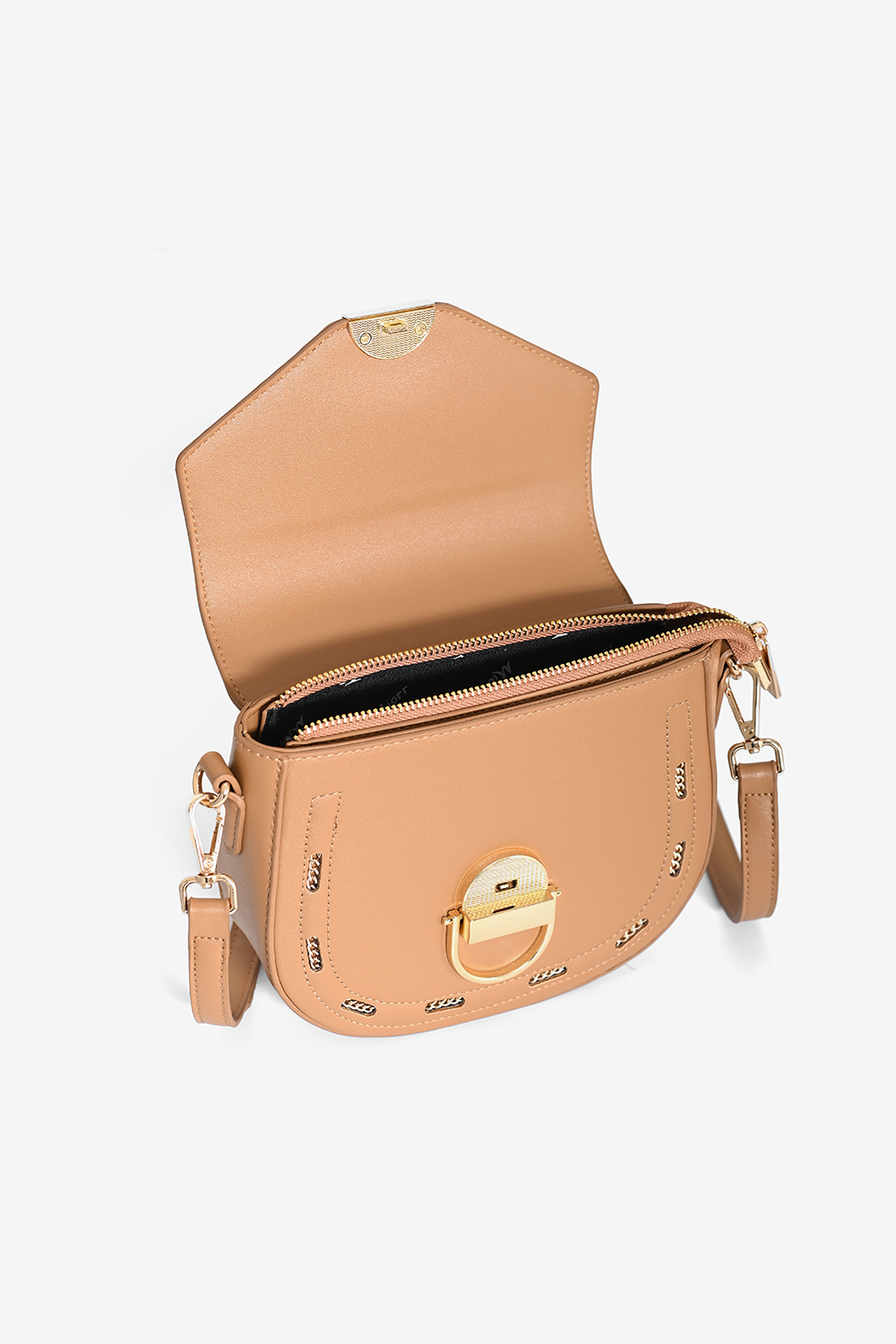 Chiếc túi đeo chéo cỡ nhỏ này có kiểu dáng đáy cong cổ điển với chi tiết khóa hợp kim vàng sang trọng sẽ tạo thêm điểm nhấn quyến rũ cho tất cả các bộ trang phục của bạn. Vẻ đẹp trang nhã này có thể được mang theo hai cách: đeo ngang người hoặc đeo chéo qua vai bằng dây đeo ngắn. Kết hợp nó với một chiếc áo sơmi xếp nếp, quần jean denim và giày lười để có một cái nhìn giản dị và mát mẻ.